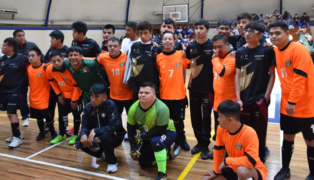 Jóvenes con parálisis cerebral (Equipo PC de Texcoco, Edomex) y con síndrome de down (CDMX) participaron en un emotivo partido de futbol durante el evento denominado Encuentro con Campeones Paralímpicos, Deportistas Adaptados y Educadores en el gimnasio central de la Escuela Superior de Educación Física, ubicada en la zona de Churubusco y Viaducto de la ciudad de México.