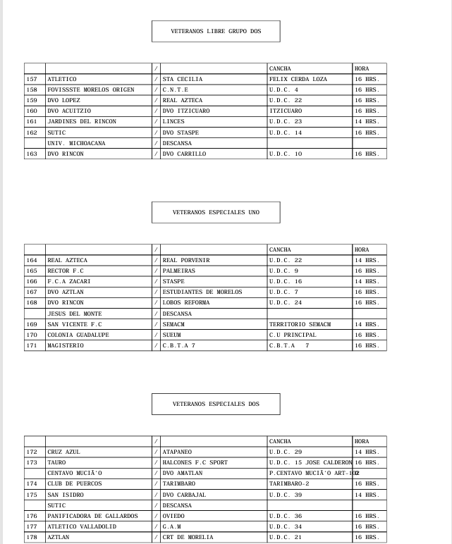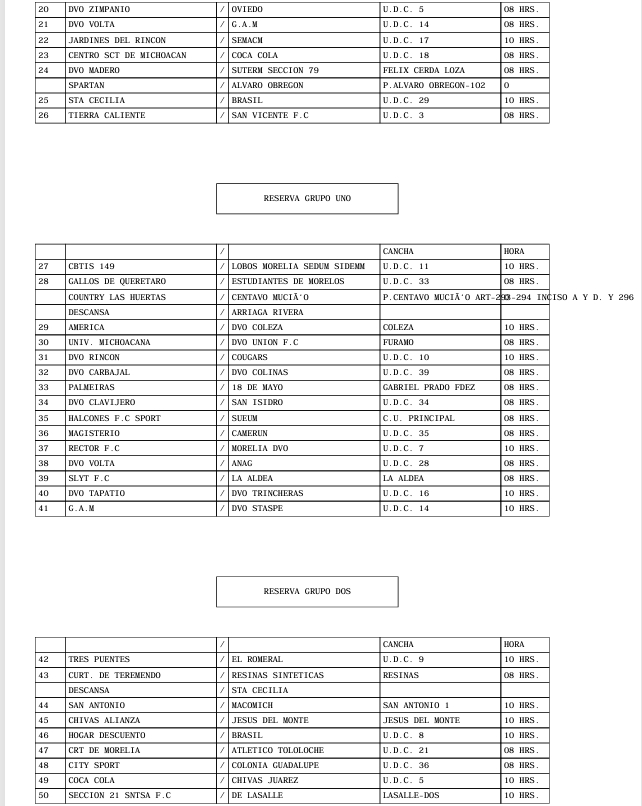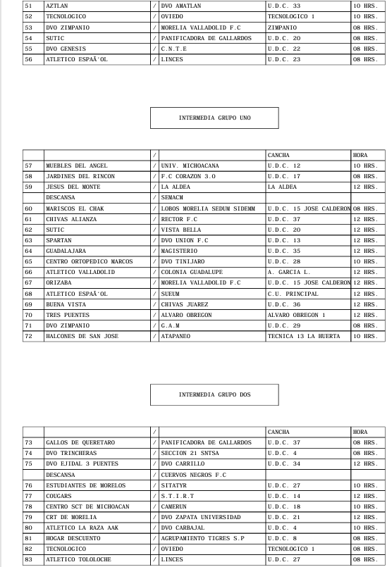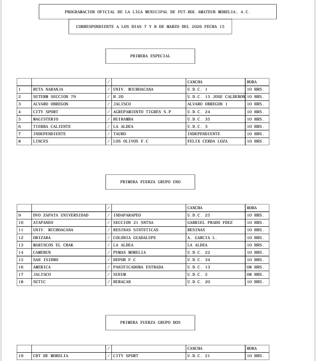 PROGRAMACION OFICIAL DE LA LIGA MUNICIPAL DE FUT-BOL AMATEUR MORELIA, A.C