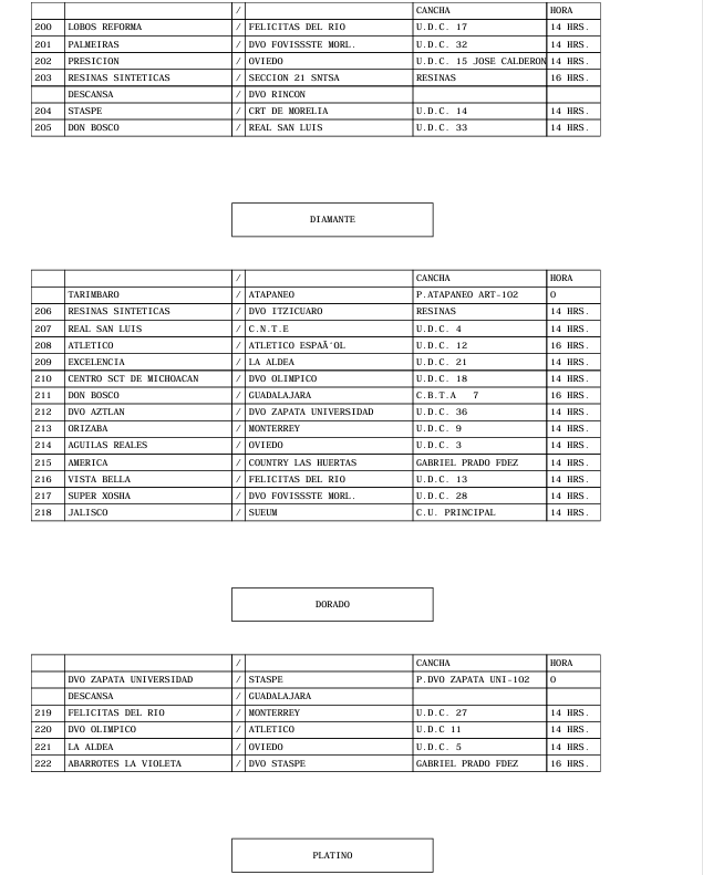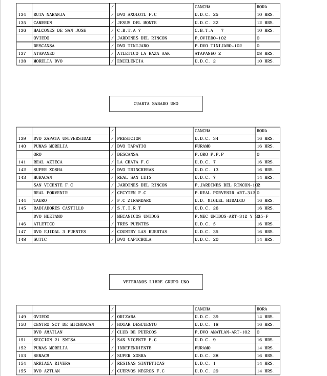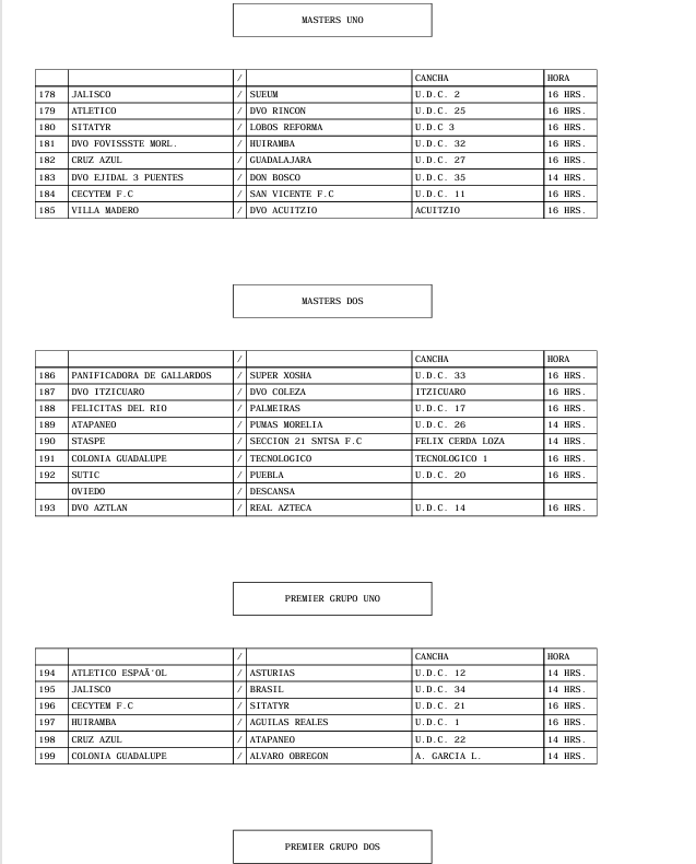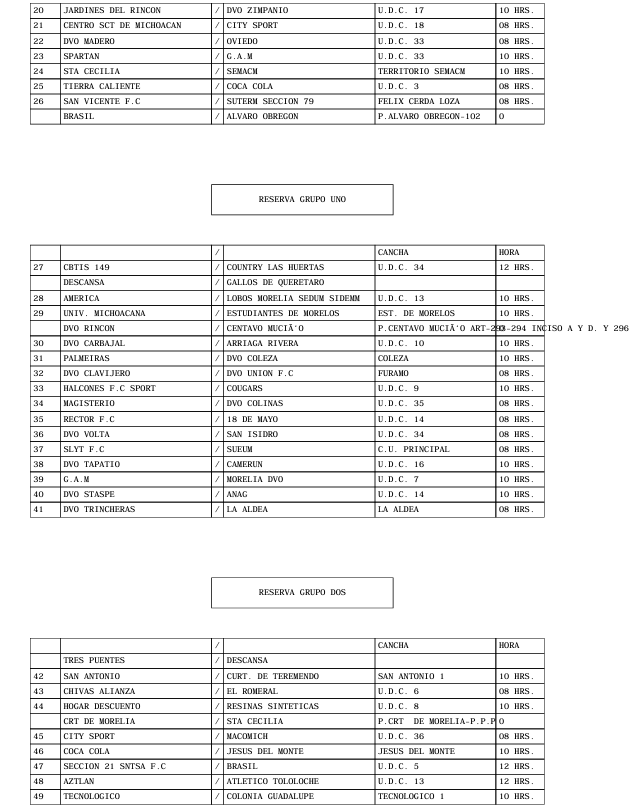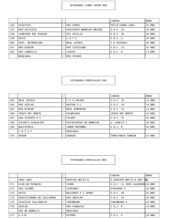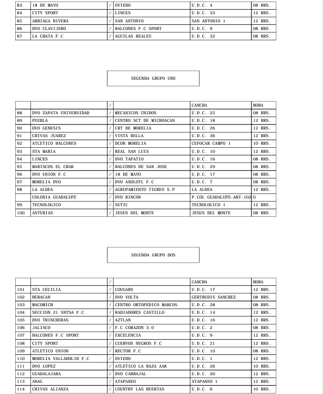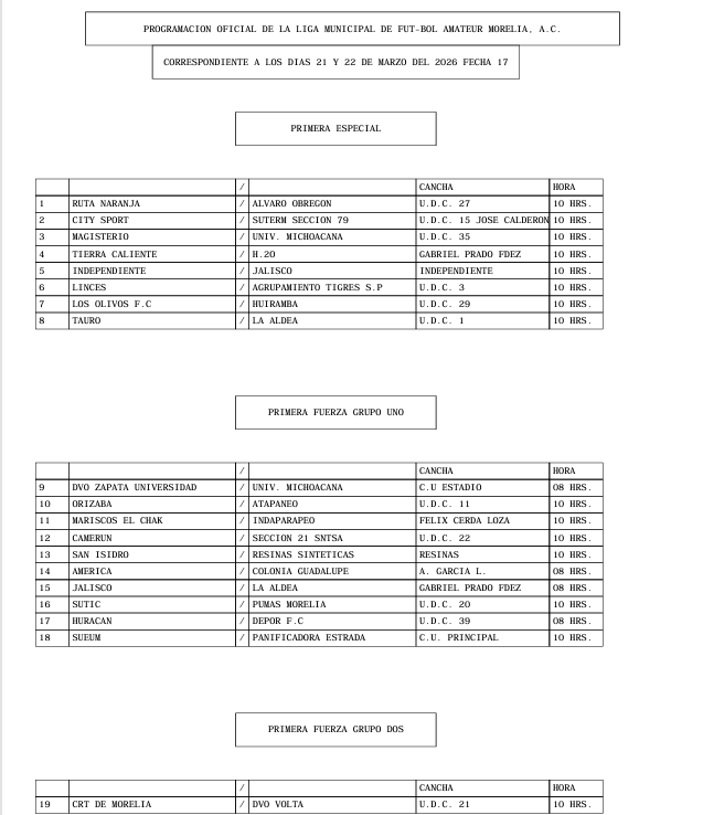 PROGRAMACION OFICIAL DE LA LIGA MUNICIPAL DE FUT-BOL AMATEUR MORELIA, A.C